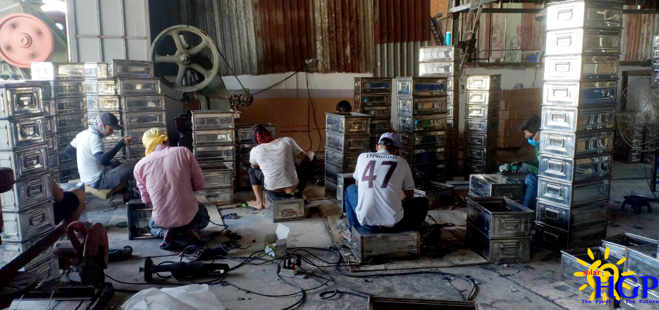 - Các nhân viên hưng gia phát đang gia công hàng cho kịp tiến độ giao hàng